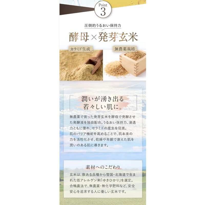 - The "yeast" and "germinated brown rice" will lead to a moisturizing and youthful skin