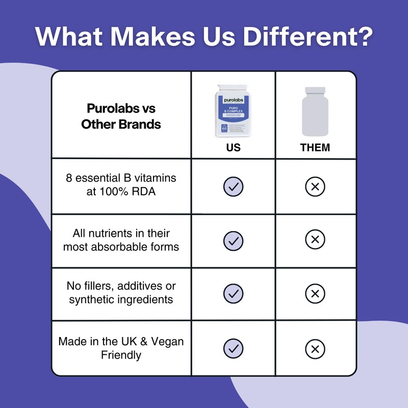 - 🌱 NATURAL & VEGAN-FRIENDLY - Unlike most supplements, Puro B Complex is vegan-friendly, clean-label, and free from additives, fillers, synthetic ingredients, and bulking agents, which offer zero nutritional benefits.