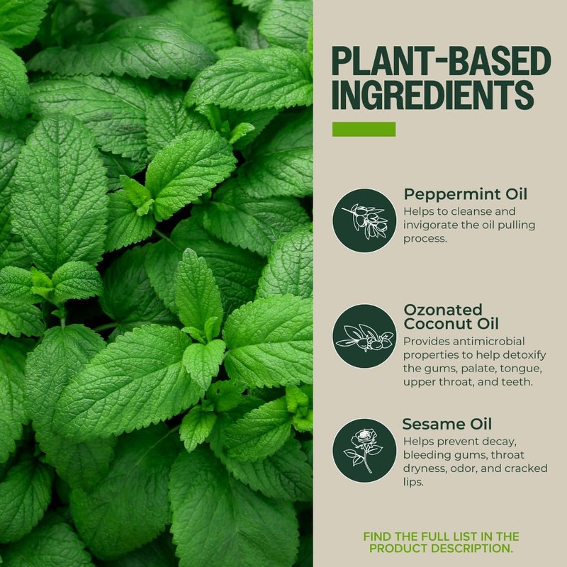PurO3 Ozonated Oil Pulling Solution - Organic, Ozone Infused Coconut, Sesame, Sunflower, & Peppermint Essential Oils for Teeth & Gums - Fluoride-Free, Non-Toxic & Non-GMO Oral Care, 8 oz