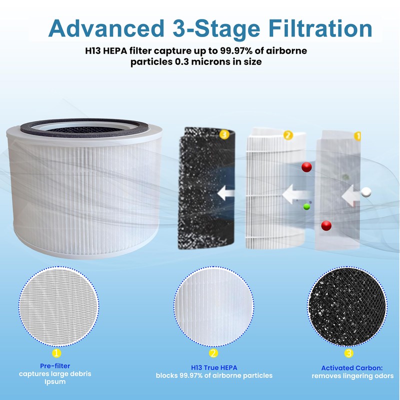 - Advanced 3-Stage Filtration – Equipped with a pre-filter, true HEPA, and activated carbon, our puroair 240 replacement filter eliminates odors, smoke, and harmful particles. Perfect for pet owners and households with high dust levels, offering powerful air cleaning.