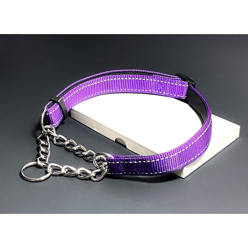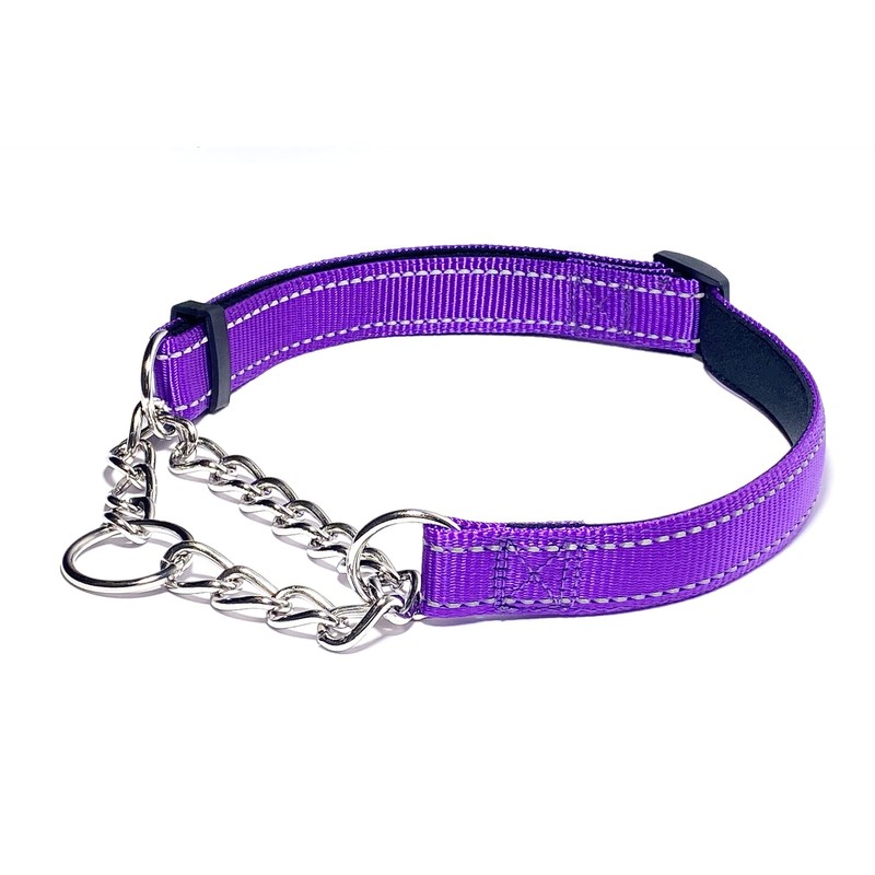 PUROAYET Martingale Collar for Dogs Reflective Nylon Dog Training Collars Soft Padded No Pull Adjustable Collars Stainless Steel Chain Collar for Large/Medium/Small Dogs (Purple,M)