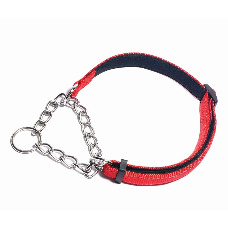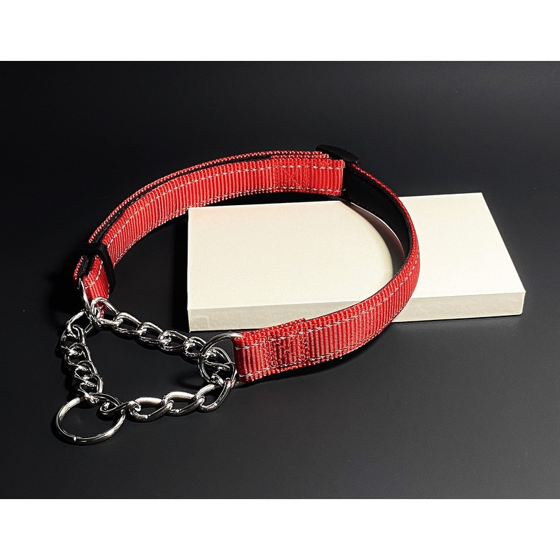 PUROAYET Martingale Collar for Dogs Reflective Nylon Dog Training Collars Soft Padded No Pull Adjustable Collars Stainless Steel Chain Collar for Large/Medium/Small Dogs (Red,S)