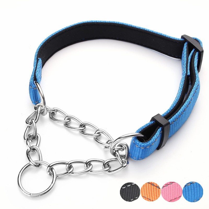 PUROAYET Martingale Dog Collar Wide 2.5CM(0.98inch) Reflective Nylon with Stainless Steel Chain Dog Collar Comfortable Soft M-(doginchs neck15-19inches)