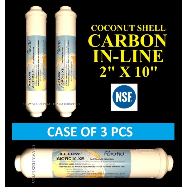PUROFLO Post Inline Carbon GAC Water Filter for Reverse Osmosis RO Systems 3 PACK NSF