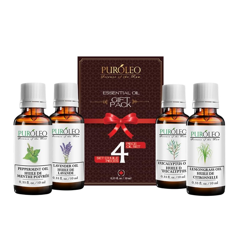PUROLEO Premium Grade Essential Oil - Gift Set 10ml Each / 0.33 Oz Bottles (Pack of 04) (Packed In Canada) 100% Pure Natural Undiluted Cold Pressed for Aromatherapy Therapeutic Grade Aromatherapy Oil for Sleep