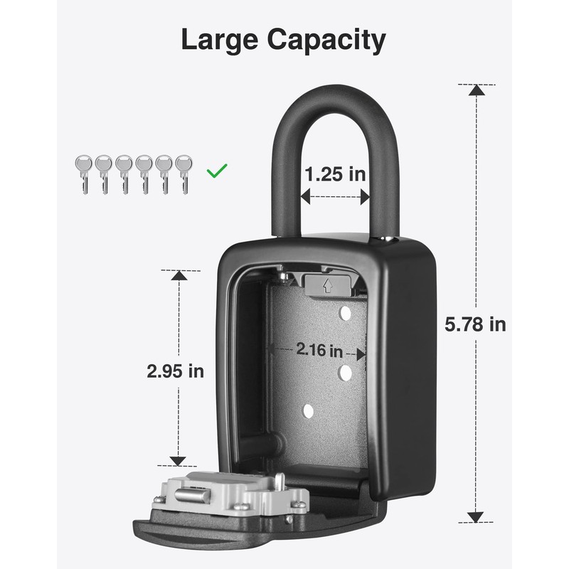 - Sturdy and Durable: The premium aluminum alloy lockbox body prevents the lockbox from being hammered, sawed, or pried open.