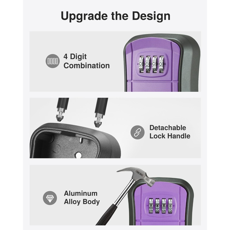 Puroma Key Lock Box, Portable Combination Lockbox Wall-Mounted Key Storage Box for House Keys, Resettable Code Safe Security Lock Box for Home, Office, Apartment Spare Key Storage (1 Pack, Purple)
