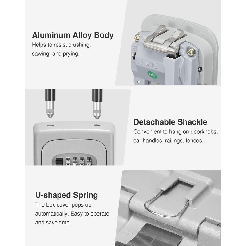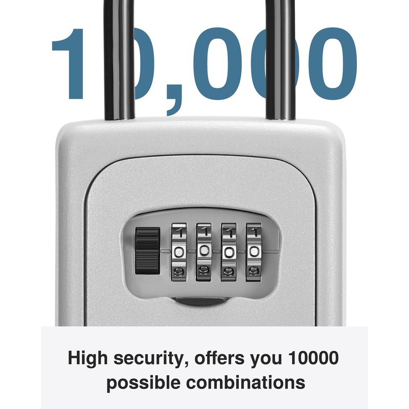 - Combination Lock: The resettable code offers 10,000 possible codes for optimal protection. The 4-digit combination is easy to remember and reset, and ensures the security of your keys.