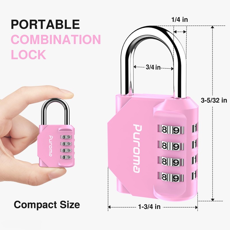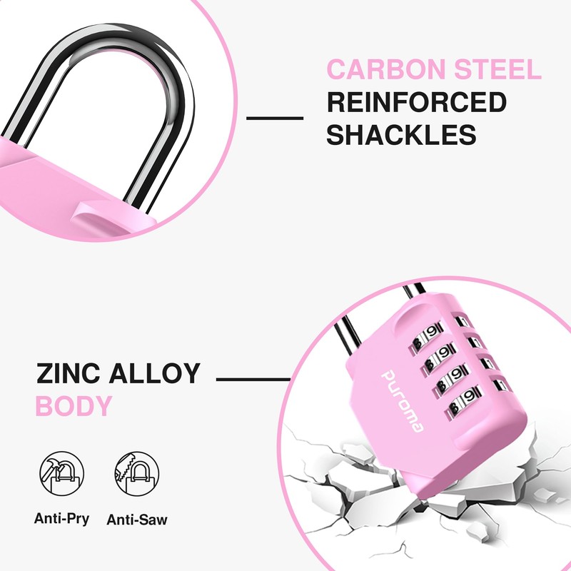 Puroma 1 Pack Combination Lock for Locker 4 Digit Outdoor Waterproof Padlock for School, Gym, Sports, Fence, Toolbox, Gate, Case, Outdoor, Hasp Storage (Pink)