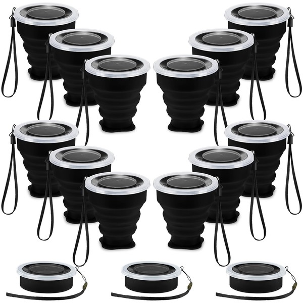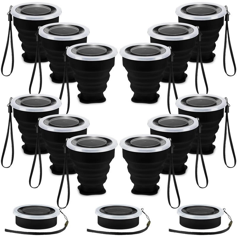 - Package Includes: the package will provide you with 12 pieces of collapsible cup with lid in black color, they are rich in quantity, can well meet your daily use, replacement and sharing needs, reusable and easy to clean, suitable for outdoor activities