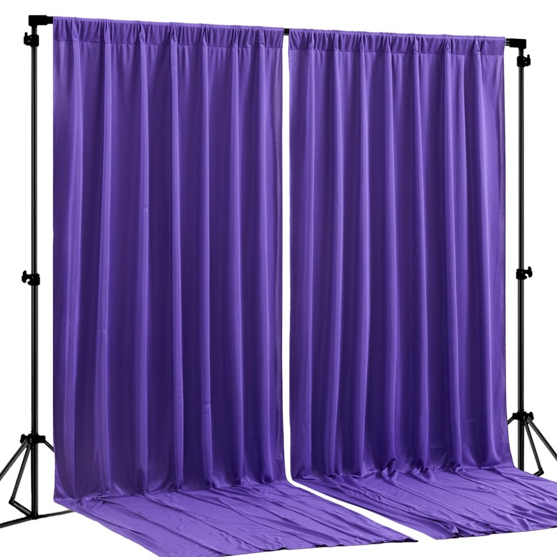 - 𝐁𝐀𝐂𝐊 𝐃𝐑𝐎𝐏 𝐒𝐈𝐙𝐄 - Every package includes 2 Panels rod pocket purple backdrop curtain for backdrop stand. Each curtain measures 4 feet wide x 10 feet high, total area of 8 feet width by 10feet height. Perfect for hanging on your balloon arch, arch backdrop stand, and wedding arch