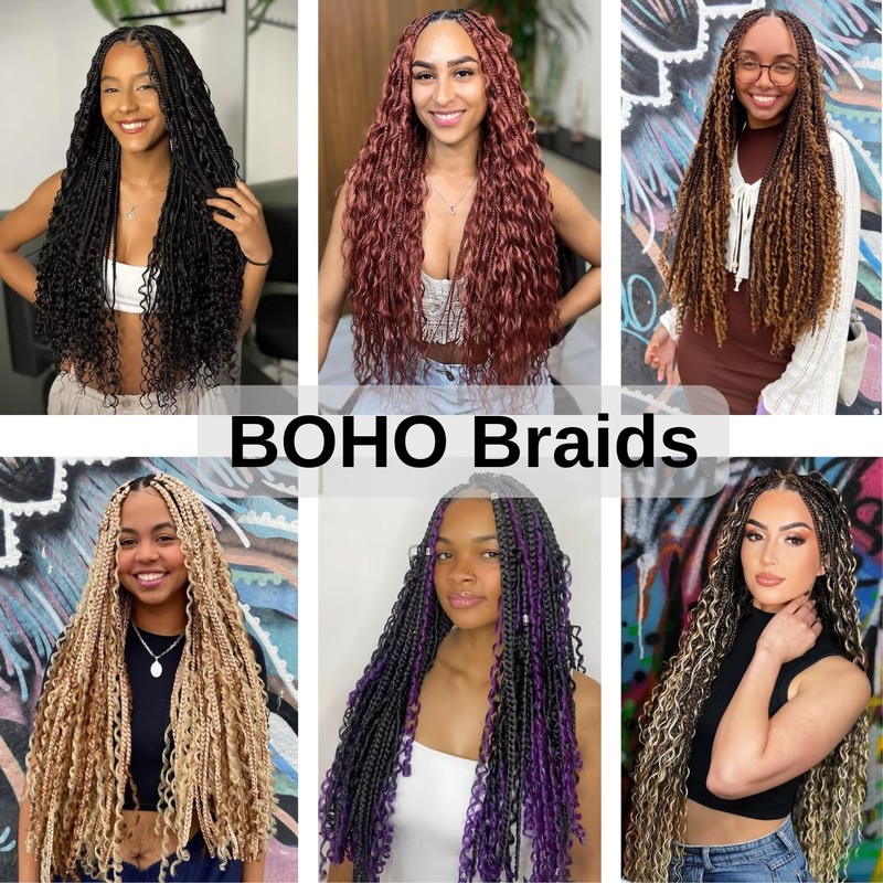 - Boho Braids are deeply loved by women and Girls.Bohemian Braids Can be Used for DIY Dressing Up, Party,Various Holiday Celebrations,In Addition,Knotless Box Braids,Goddess Braids,Ghana Braids and More Styles of Braids are Available for You to Choose
