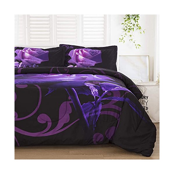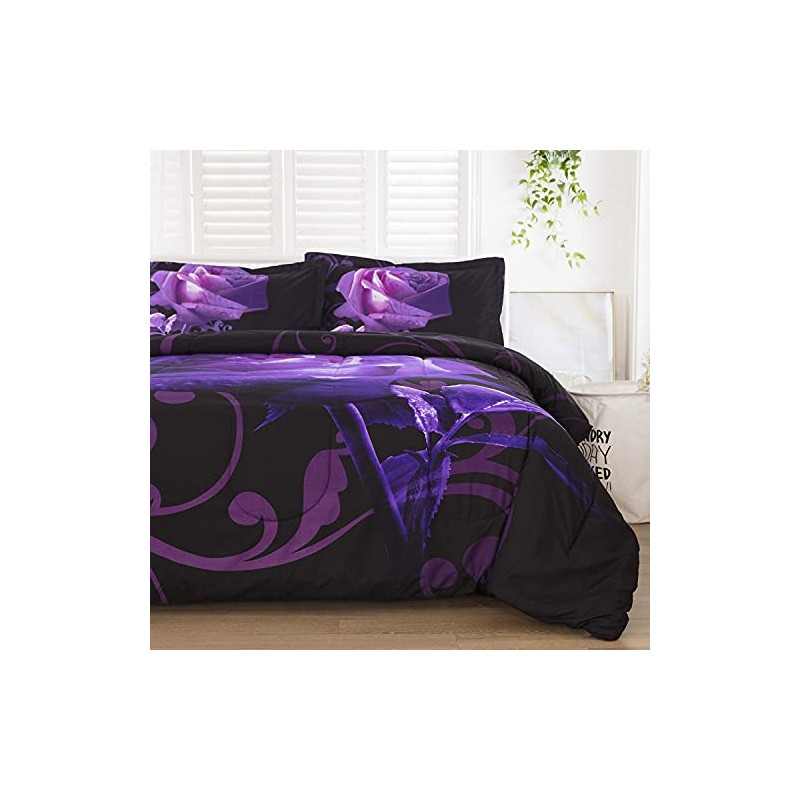 - 【Purple Comforter Full】WONGS BEDDING 3D purple rose comforter set uses a black background with a purple rose pattern to form a noble, elegant and fashionable style.If you are considering a warm and beautiful comforter to decorate your bedroom, then you must not miss our comforter.