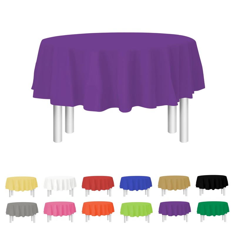 - EASY CLEAN-UP: Choose a disposable tablecloth for your next event! These plastic tablecloths for round tables are convenient and a great way to make party clean-up stress-free!