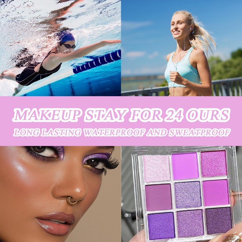 - Waterproof Formula: Purple eyeshadow palette with high color rendering is suitable for all skin colors to create impeccable eye makeup effects. Pearlescent purple eyeshadow palette's waterproof and sweat-proof formula ensures that the eyeshadow color lasts long, allowing you to maintain perfect eye makeup in any environment.