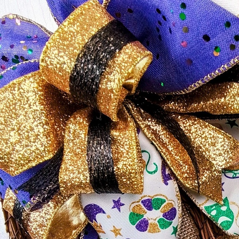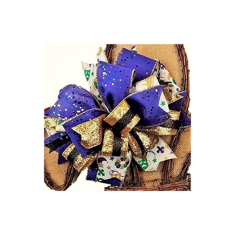 Purple Green Gold Fat Tuesday Lantern Wreath Bow - Burlap Wreath Embellishment for Making Your Own - Layered Full Handmade Farmhouse Already Made (Mardi Gras (Stripes), Set of 1)
