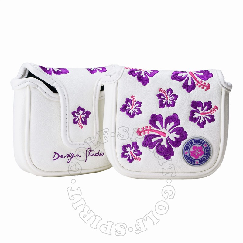 - Purple Hibiscus Putter Headcover for High-MOI Mallet Putter, Right and Left Hand, White