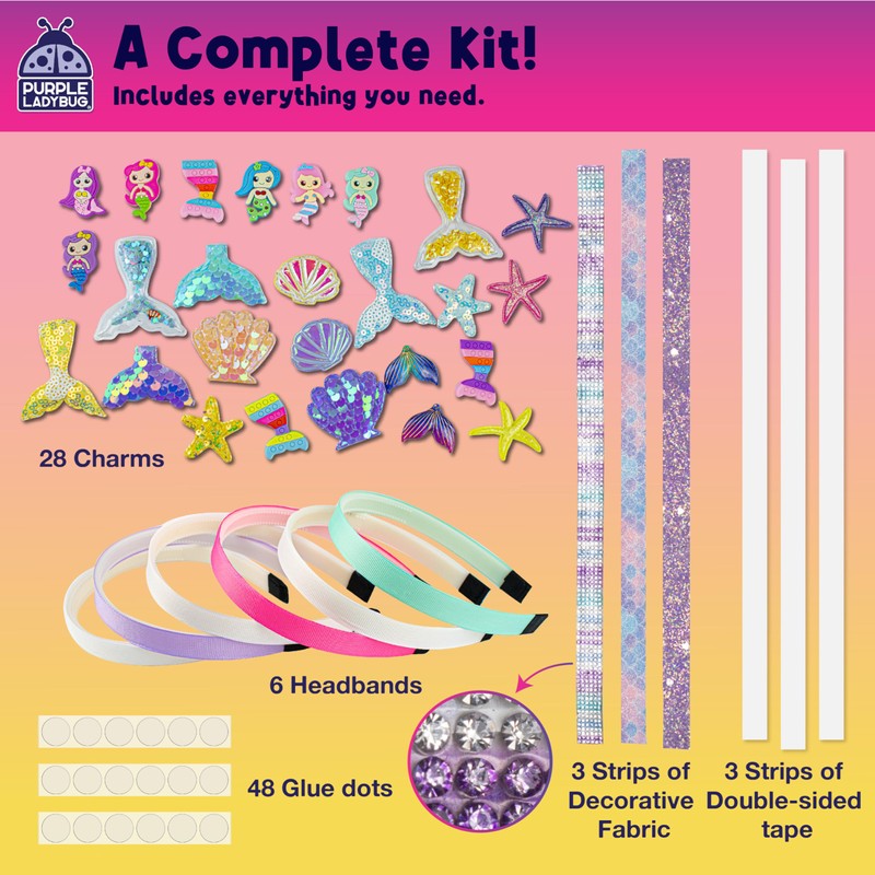 - COMPLETE DIY KITS FOR GIRLS - This mermaid inspired craft kit includes 6 plain headbands, 3 strips of decorative fabric, 29 cute and pretty mermaid charms, 1 glue, and detailed step-by-step instructions to create unique girls headbands.