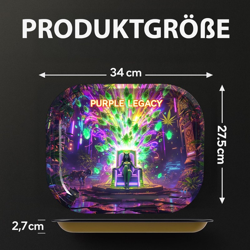 PURPLE LEGACY® Rolling Tray 34 × 27.5 × 2.7 cm | Metal Sheet | Egyptian Cyberpunk Design | Practical Tray with Rounded Corners (Reincarnation)