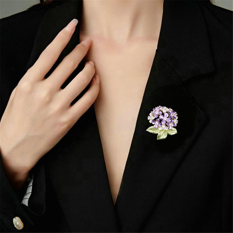 Adorn yourself with the delicate beauty of our Purple Lilac Flower Brooch. Meticulously crafted with shimmering cubic zirconia and high-quality alloy, this vintage-inspired piece captures the ethereal charm of blooming hydrangeas, radiating sophistication with every wear.
