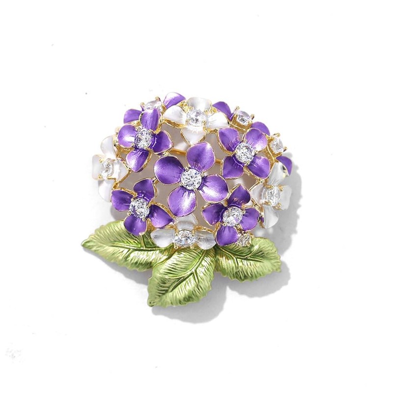 Purple Lilac Flower Brooches for Women Collar Hydrangea Wedding Bouquet Brooch Crystal Scarf Flowers Art Deco Lapel Pin Elegant Accessories Jewelry for Girlfriend Teacher