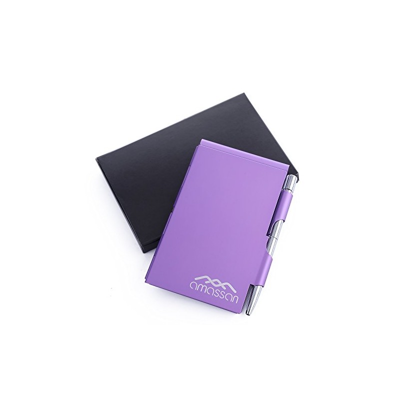 Purple Pocket Metal Convenient Aluminum Note Case with Mini Pen, 60 Pages of Memos& Scratch Pads
