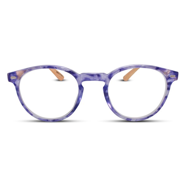 Purple Retro Bamboo Frame Round Reading Glasses for Women with Sturdy Made - Flexible Spring Hinge Readers for Women - Trendy for all Face Shapes High End Fashion Reader Glasses - Cheaters 3.0
