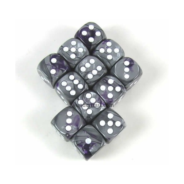 Purple Steel Gemini with White Pips 12mm D6 Dice Set of 12 Wondertrail WCX26832E12