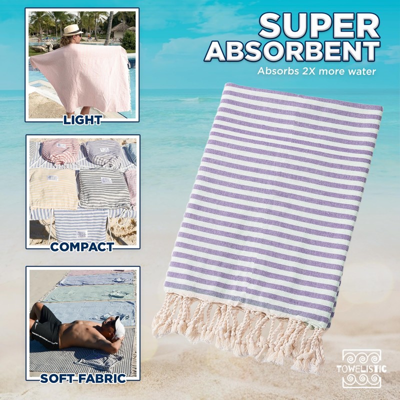 Purple Turkish beach towel oversize 100cm x 180cm with carry bag