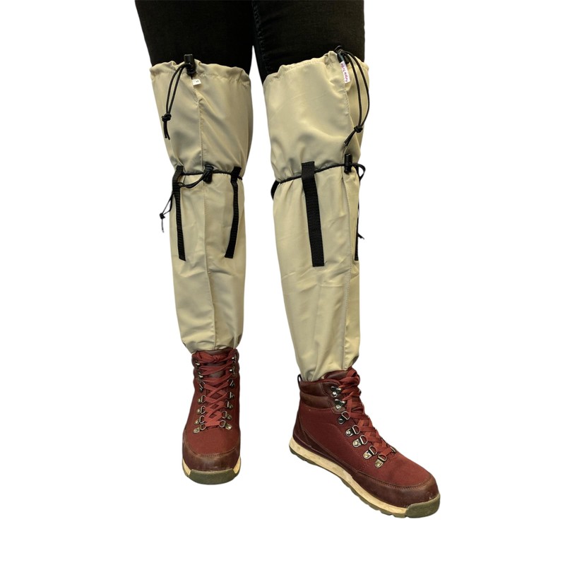 Purple Turtle Leech Socks should be worn like a second pair of socks inside your boots and they pull right up over your trousers and above your knees. They can then be secured with a toggle and elastic draw cord both above and below your knees, thereby creating a continuous leech proof barrier.