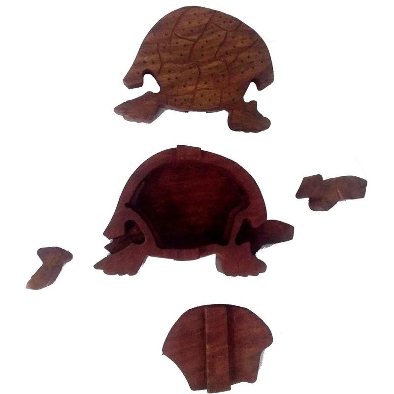 • Wooden puzzle play box with secret compartment: turtle