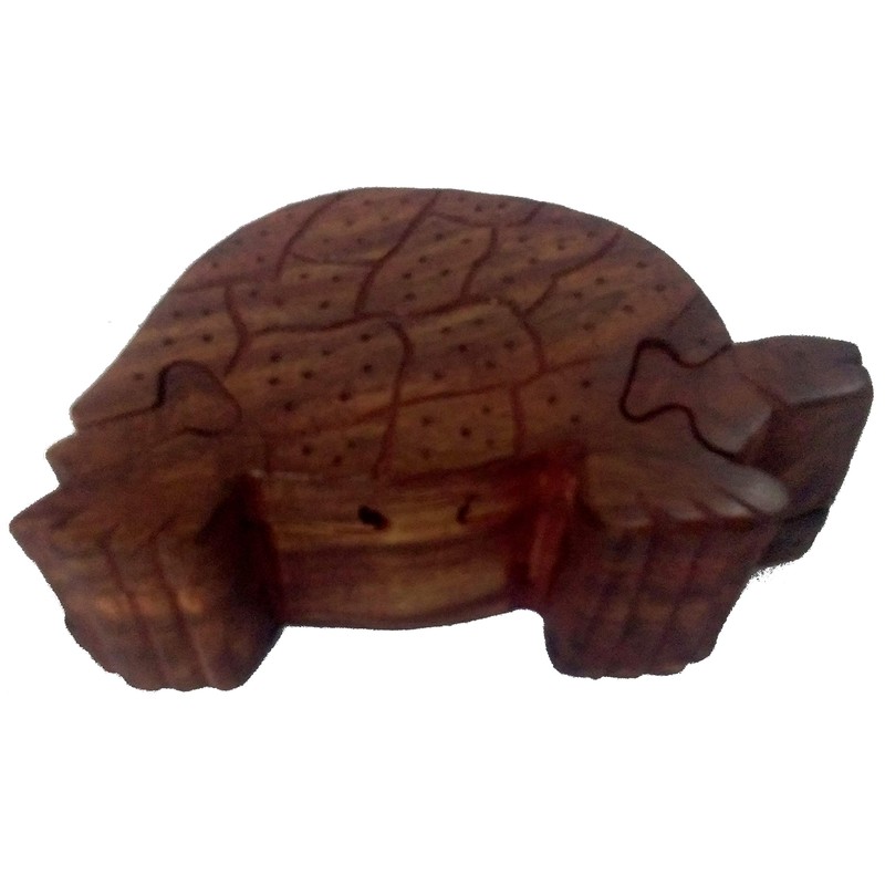 Purpledip Magic Wooden Puzzle Turtle Box Go Slow Handmade Mystery Keepsake Bo...