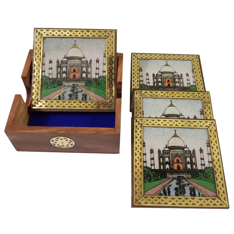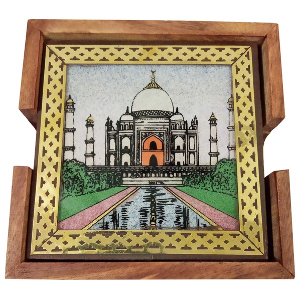 Purpledip Pinewood Gemstone Coasters (Set of 6): Taj Mahal (10716A)