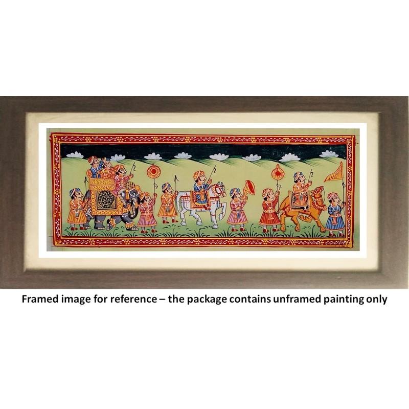 Purpledip Silk Cloth Painting King's Outing: Collectible Indian Miniature Art Unframed Wall Hanging (12479C)