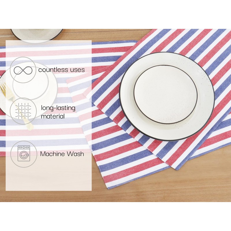 PurpleEssences 4th of July Striped Placemats, Set of 4, Washable Double Layer Woven placemat for Dining Table and Kitchen - 13 x 19 Inch - 4th of July Red Blue and White