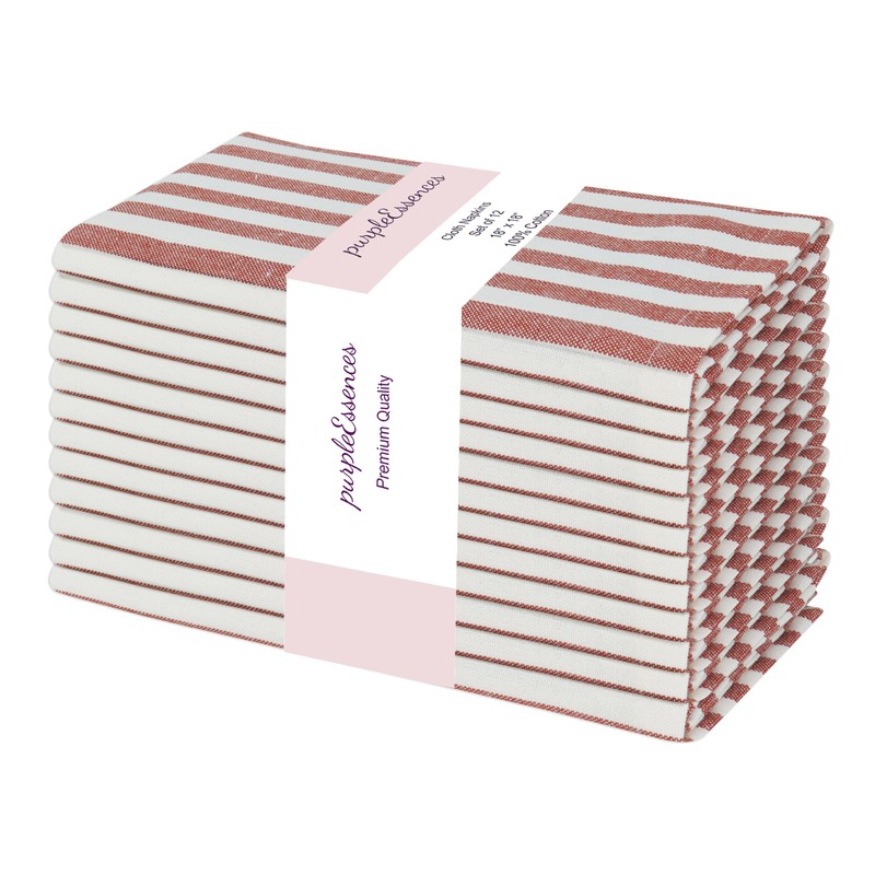 PurpleEssences Plain Striped Cloth Napkins - Set of 12-100% Cotton - 18 x 18 Inch - Spring Summer Easter - Perfect Everyday Use Dinner Napkin - Royal Rust Ivory