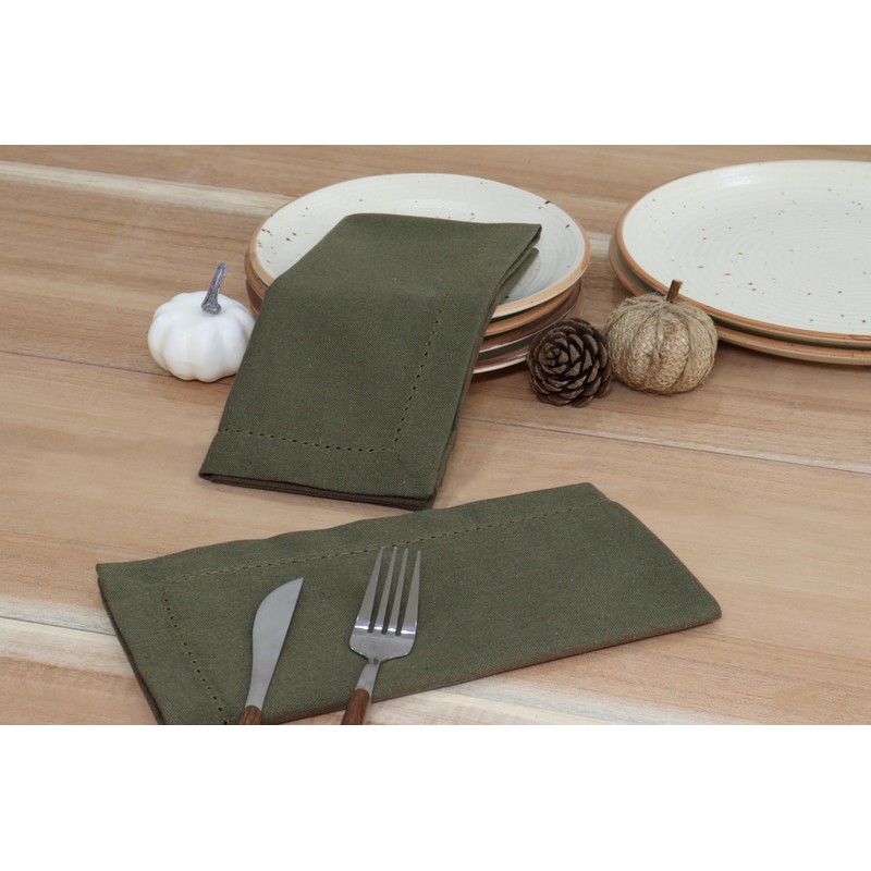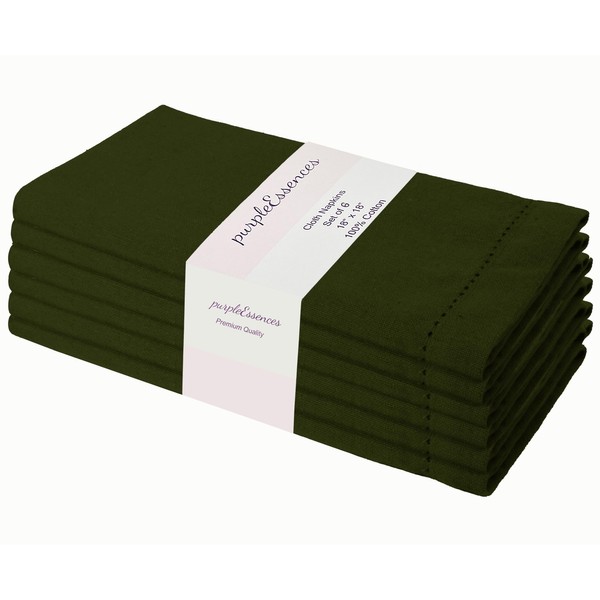 PurpleEssences Set of 6 Hemstitch Cloth Dinner Napkins 100% Cotton - Soft Durable Washable -Ideal for Events Wedding Fall Thanksgiving - Perfect Everyday Use Table Linen 18x18 - Olive Green