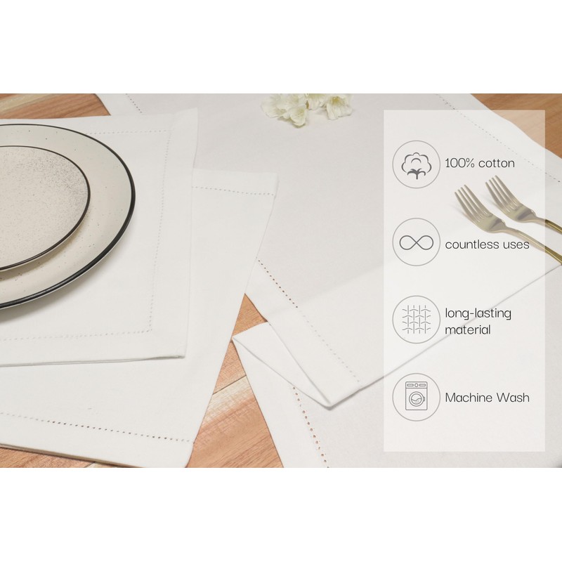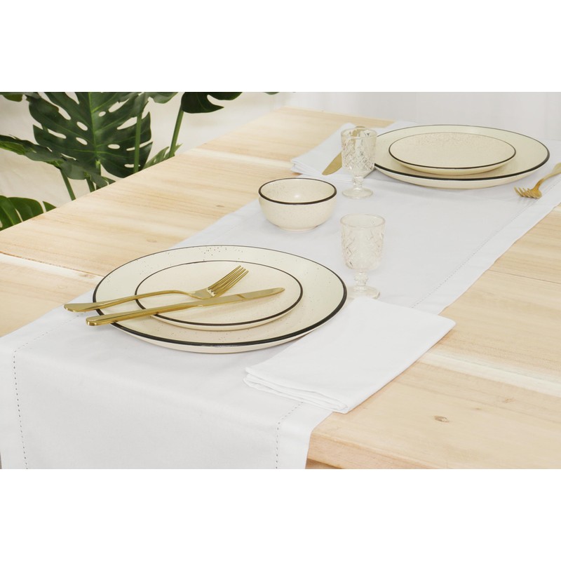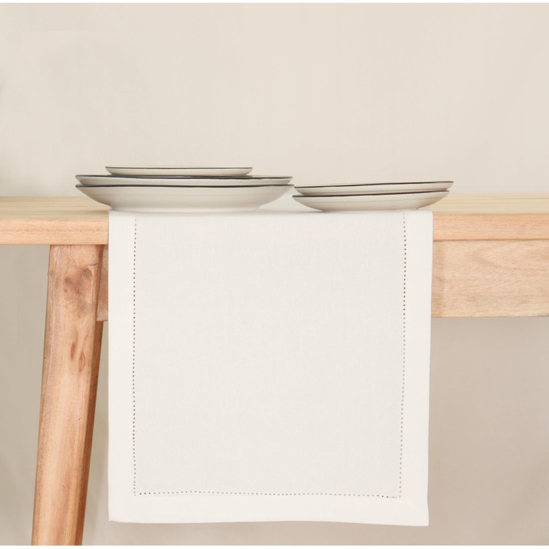 - Premium Quality Material: Crafted from 100% cotton, this white table runner linen embodies elegance and durability. Its delicate hemstitch detailing adds a sophisticated touch to your dining table.