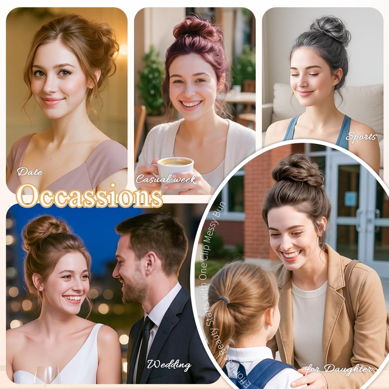 - 【Effortless Style for Any Occasion】 This messy bun hair piece is your everyday styling hack and your go-to for special occasions. Throw it on for errands, gym classes, or video meetings—or dress it up for weddings, date nights, and parties. Casual yet polished, secure yet comfortable—hair buns hair piece always works.