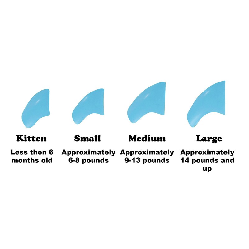 Developed by a veterinarian, **Purrdy Paws** vinyl nail caps glue on to your cat's nails. This amazing American Made product blunts your kittys' nails to protect against problem scratching such as: \- Damage to Household Surfaces, Floors, Doors, Screens, Walls and Furniture \- Protects You and Your Family from Scratches **Application is simple:** 1) Try on the nail cap, without glue, to ensure a proper snug fit. 2) If you have any sizing concerns please stop and contact us. 3) Fill each nail cap 1/3 of the way full then slide the cap on. 4) Observe your cat for 5 minutes and you're done! Our 6 month supply is purrfect for pet owners who treat only the front or rear claws with extra adhesive included for use in each application. Each application lasts approximately 4-6 weeks until your cat naturally sheds their nail. The nail caps are safe and non-toxic even if accidentally swallowed! **Cat Size Guidelines:** **Kitten Size: (Less than 6 months old)** These will fit most kittens by the time they reach the age of 12-16 weeks. **Small: (Approximately 6 months old - Approximately 6-8 pounds)** Small-boned adult cats or large kittens often wear the small size. **Medium: (Approximately 9-13 pounds)** Most adult average size cats wear medium. **Large: (Approximately 14 pounds and up)** Very large-boned and large-breed cats wear large. **Each Set Includes:** 40 Vinyl Nail Caps 4 Tubes Adhesive Applicator Tips Instructions