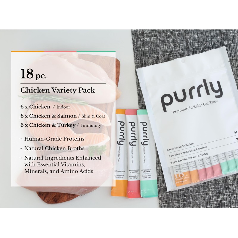Purrly Lickable Wet Cat Treats Healthy Grain-Free Chicken Variety Pack (18 Count) Squeezable Creamy Purée with Human-Grade Protein Sources and Functional Nutrients Non-GMO No-Artificial-Additives