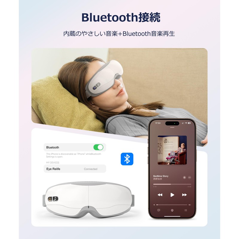 Pursay Hot Eye Mask, Rechargeable, Air Pressure x Heating x Music Mode, Eye Care, Eye Care, Bluetooth Music, Eye Care Goods, Easy Operation, Foldable, Type-C Rechargeable, Auto Off Timer, Lightweight