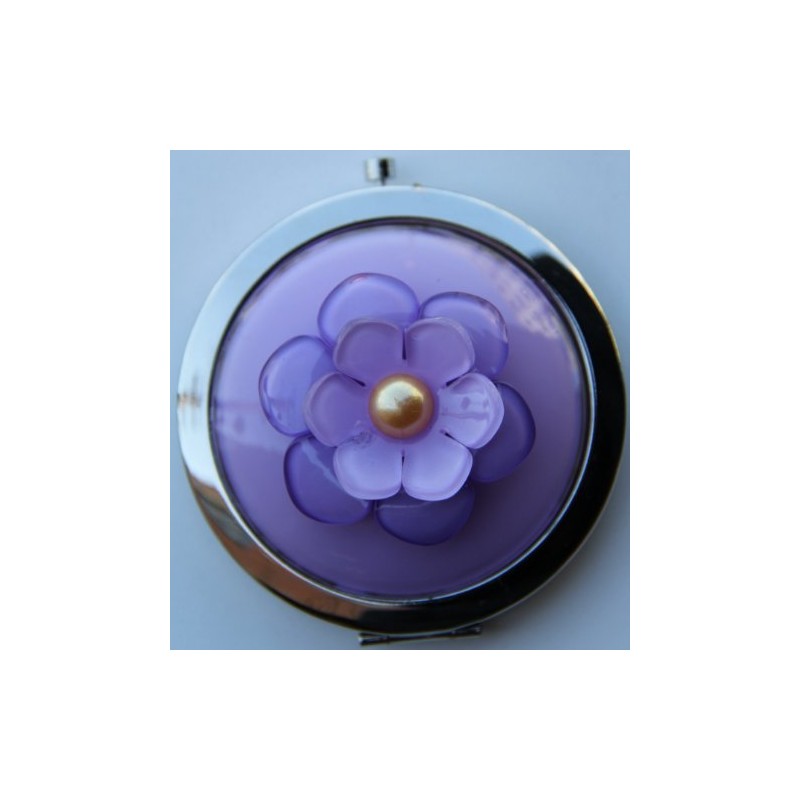 Purse Handbag Double Compact Cosmetic Mirror - 3D (S) Lavender Flower