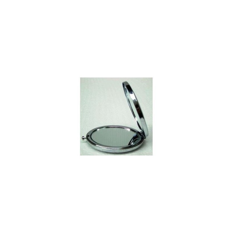 - Opens at a side hinge to reveal a dual glass mirror interior