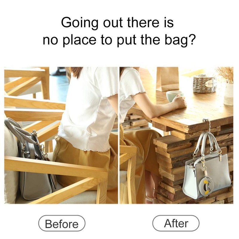 - ✔ [Clean and Safe] Keeps your bag is clean and you don't need to put the bag on the dirty floor or in a crowded chair, you can just hang your purse right next to you.