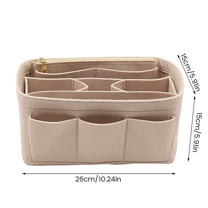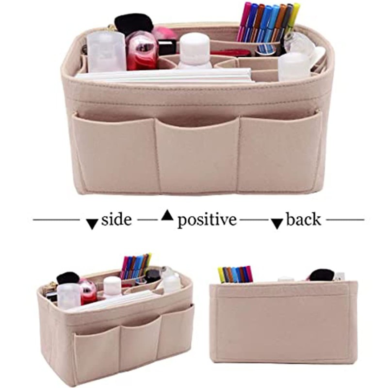 Purse Organizer Insert For Handbags,Tote Bag Organizer Insert with 13 Pockets, Felt Cloth Cosmetic Insert Organizer,Detachable Handbag Insert Bag with Zipper,Compatible with Neverful Speedy (Beige)