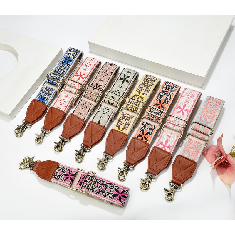 Purse Strap,2" Leather End Shoulder Strap Adjustable Replacement,Retro Jacquard Multi-Pattern Crossbody Bag Straps
