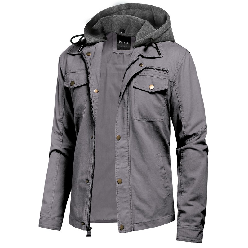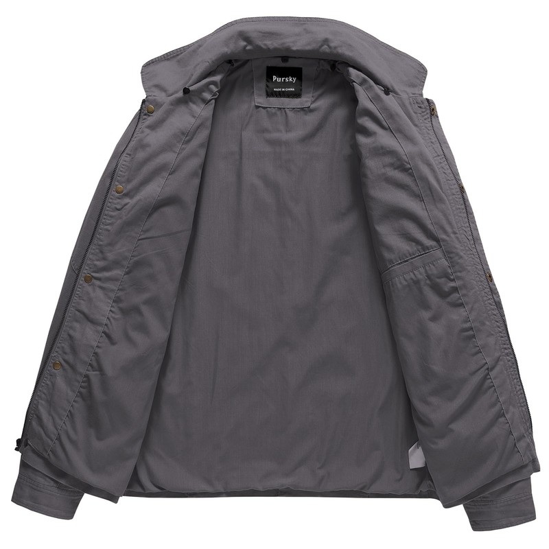 Pursky Jacket For Men Fall Military Jacket Casual Canvas Outerwear Windbreaker Lightweight Cotton Utility Coat Mens Light Grey M
