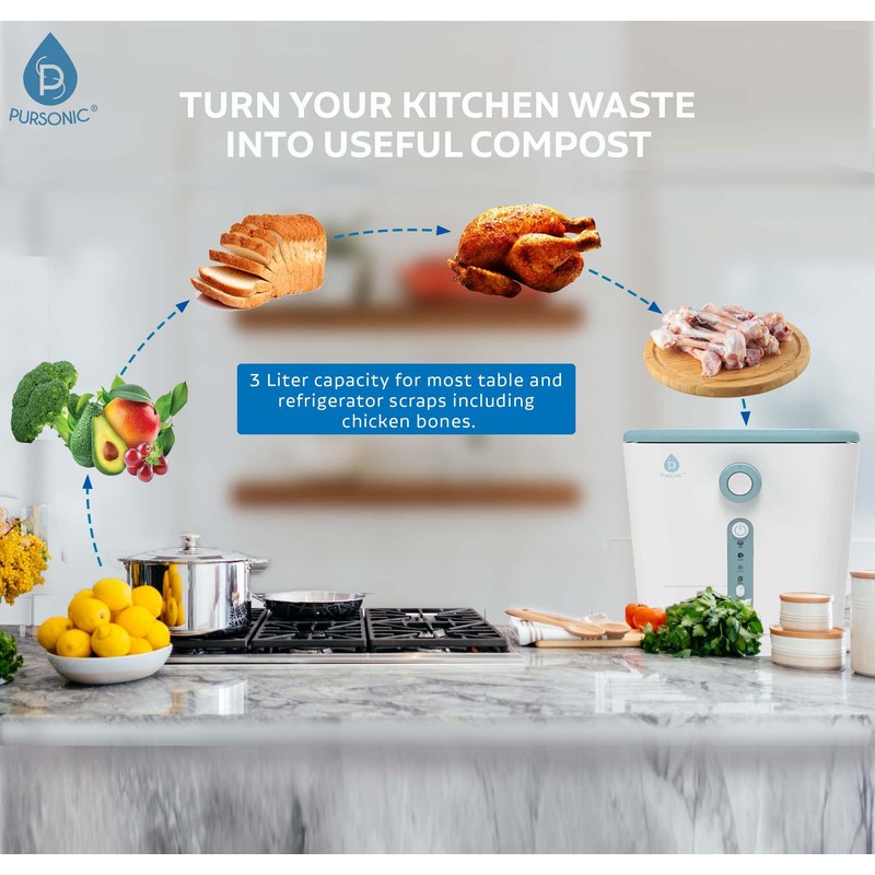 Pursonic Compost Bin Kitchen Trash Can Electric Recycling Bin - Food Waste Composter with 3L Capacity - Environment Friendly Indoor Compost Bin - Smart Compost Machine for Apartment Countertop