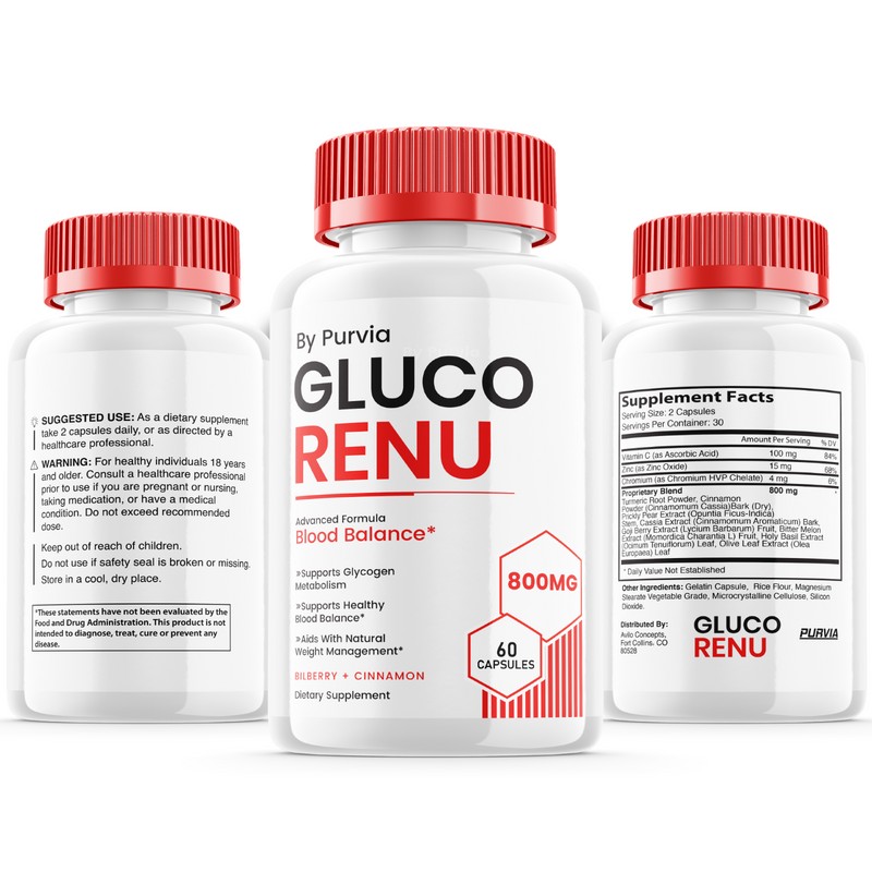 Purvia (3 Pack) Gluco Renu Capsules for Overall Blood Health Support Formula Supplement